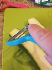 The tools that I used were pretty simple! I used a T vegetable peeler (I think that’s what it’s called) to make long, thin pieces of zucchini. I’m not a food photographer, and I don’t really follow exact recipes as I cook, so these are just pics from my own kitchen as I was making it.